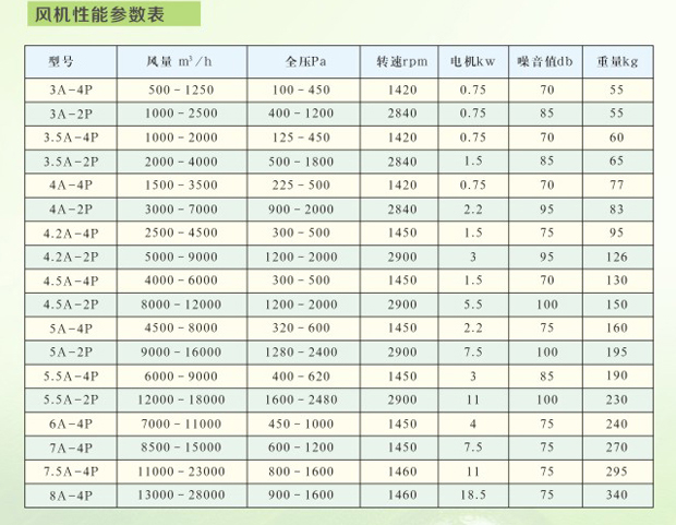 ・机号:2.8#6# 风量:565-15455m3/h 风压:176-3334pa