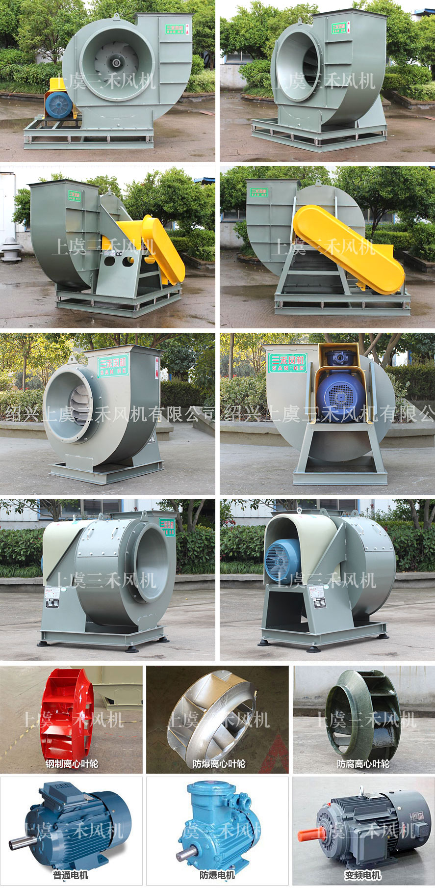 ・特点:采用C式皮带传动,后倾式离心叶轮,通风换气、可制作成防爆及防腐型,有钢制和玻璃钢制作