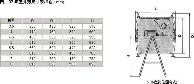 特点:宽叶片、大弦长、空间扭曲倾斜式叶型,具有风量大、噪声低、振动小、外形美观工、节能高效、可制成防爆及防腐型,有带网罩、带自垂百叶及角度弯头三种型号