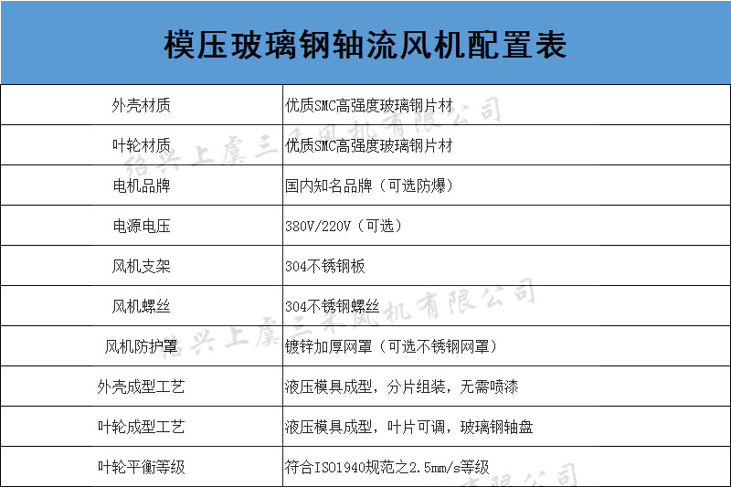 特点:采用优质SMC高强度玻璃钢材料模压成型,宽叶片、大弦长、空间扭曲倾斜式叶型,角度可调,具有风量大、噪声低、振动小、外形美观工、节能高效、可制成防爆及防腐型,有带网罩、带自垂百叶及角度弯头三种型号。